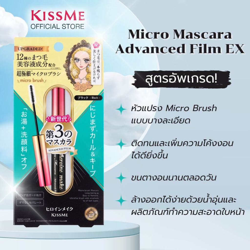 [Limited Set] คิสมี เซ็ตมาสคาร่า อีเอ็กซ์ หัวแปรงไมโครเรียวเล็ก สีดำ + ไพรม ลิควิด อายไลเนอร์ สูตรกันน้ำ สีดำ