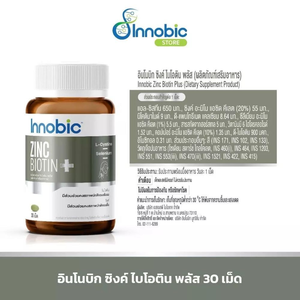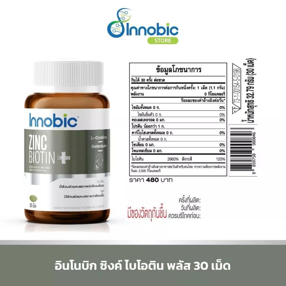 INNOBIC Zinc Biotin Plus ผลิตภัณฑ์เสริมอาหารอินโนบิก ซิงค์ ไบโอติน (30 เม็ด)