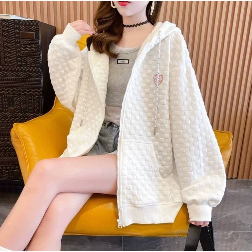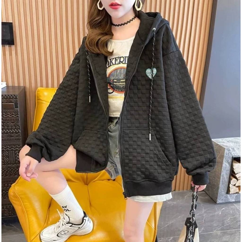 เสื้อแขนยาวฮู้ด Big size (อก 60 นิ้ว) ใส่กันหนาวได้ ซิปหน้า มีกระเป๋า ปักหัวใจที่อกซ้าย ผ้านิ่ม B88