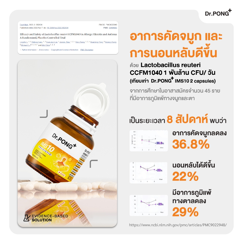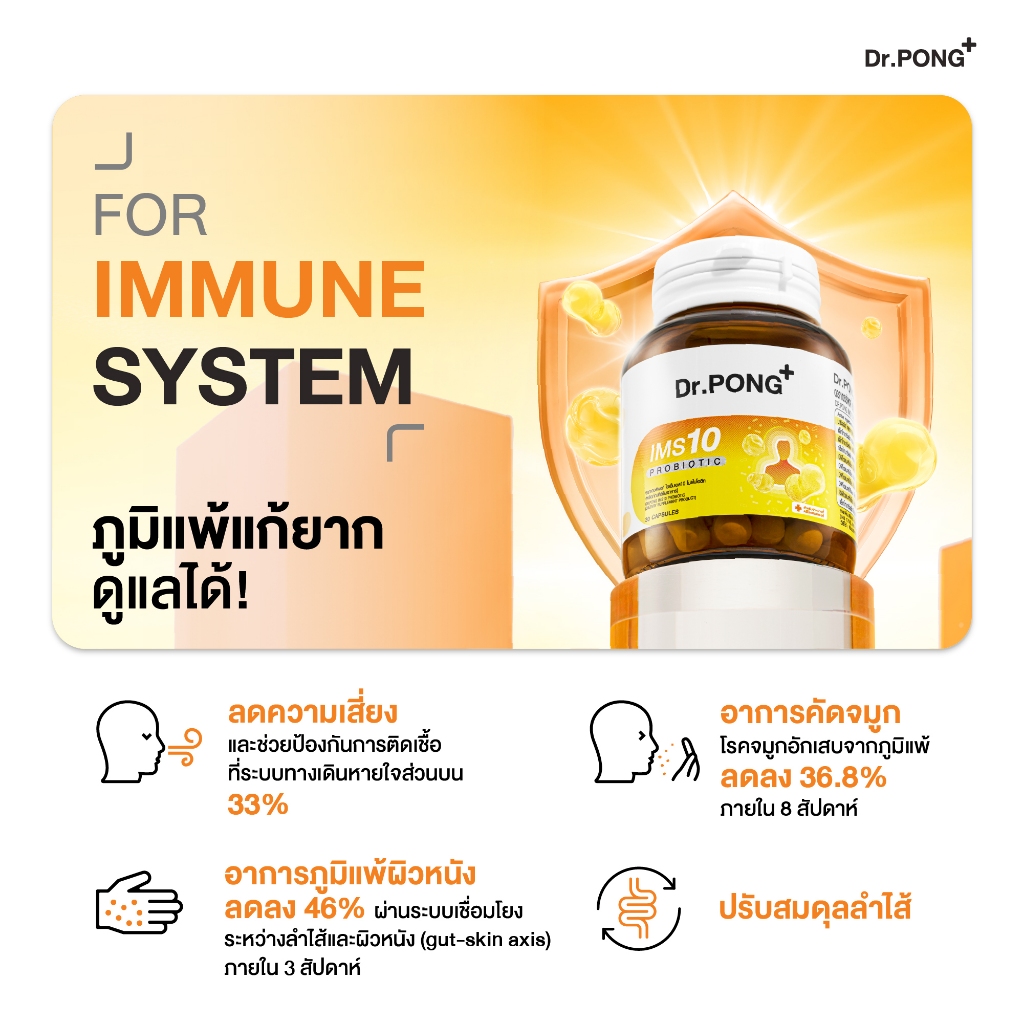 Dr.PONG IMS10 PROBIOTIC โพรไบโอติกเสริมภูมิคุ้มกัน ลดอาการภูมิแพ้ ผื่นคัน ลมพิษ
