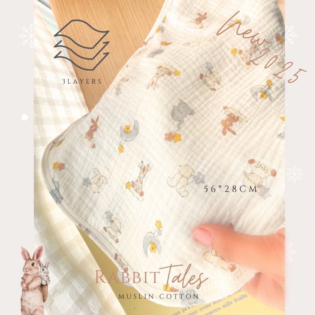 Cali ผ้าพาดบ่า อเนกประสงค์ ผ้ามัสลินทอ 3 ชั้น ผลิตจากเส้นใยธรรมชาติ🌿100%*Rabbit tale🐇*ป้าย Cali Baby