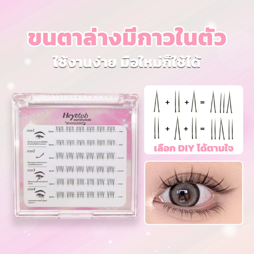 【ส่งด่วนจาก กทม.】HeyeLash ขนตาล่างจับช่อมีกาวในตัวรุ่น #Moonlight ทรงธรรมชาติ ยาว 5-6มม. ไม่ง้อกาว
