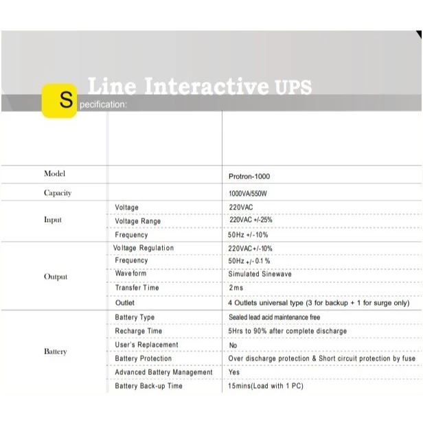 UPS (เครื่องสำรองไฟฟ้า) SKD PROTRON-1000 (1000VA 550W) เครื่องสำรองไฟ อุปกรณ์สำรองไฟ รับประกัน 2ปี