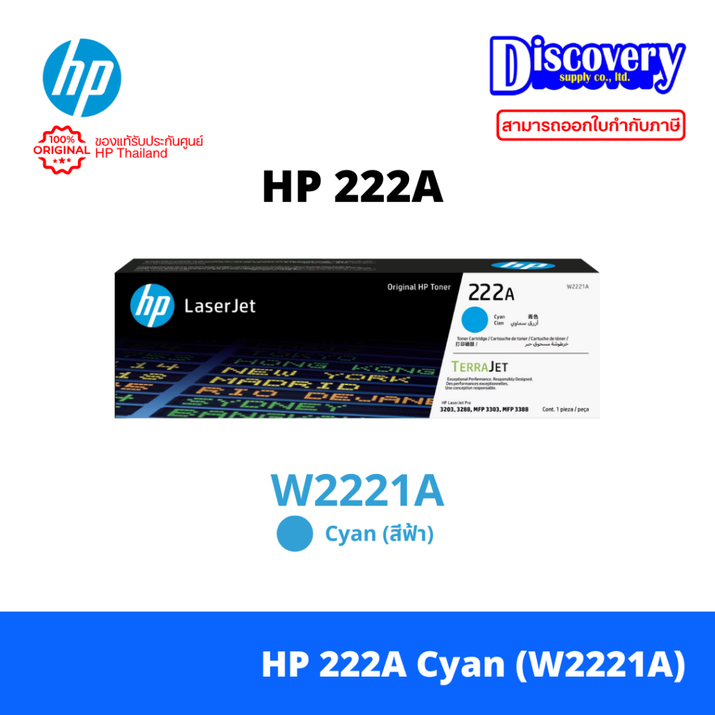 HP 222A / 222X ตลับหมึกโทนเนอร์แท้ Original LaserJet Toner Cartridge (W2220A-23A)