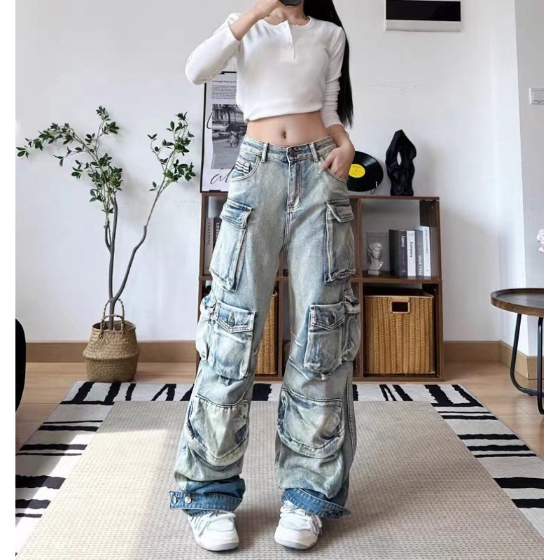 กางเกงยีนส์คาร์โกรุ่นใหม่ล่าสุดทรงสวยไม่เหมือนใคร กางเกงยีนส์แฟชั่นทรงเท่ๆเก๋ๆ กางเกงยีนส์ขากระบอกใส่ได้ทั้งหญิงและชาย