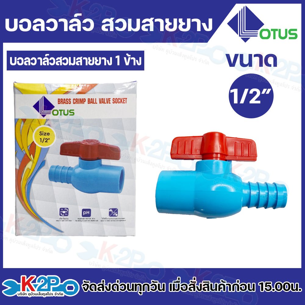 Lotus บอลวาล์ว บอลวาล์วสวมสายยางแบบ 1 ข้าง และ 2 ข้าง มีขนาด 1/2 นิ้ว และ 3/4 นิ้ว