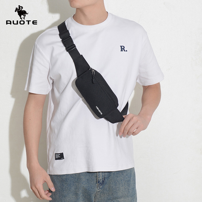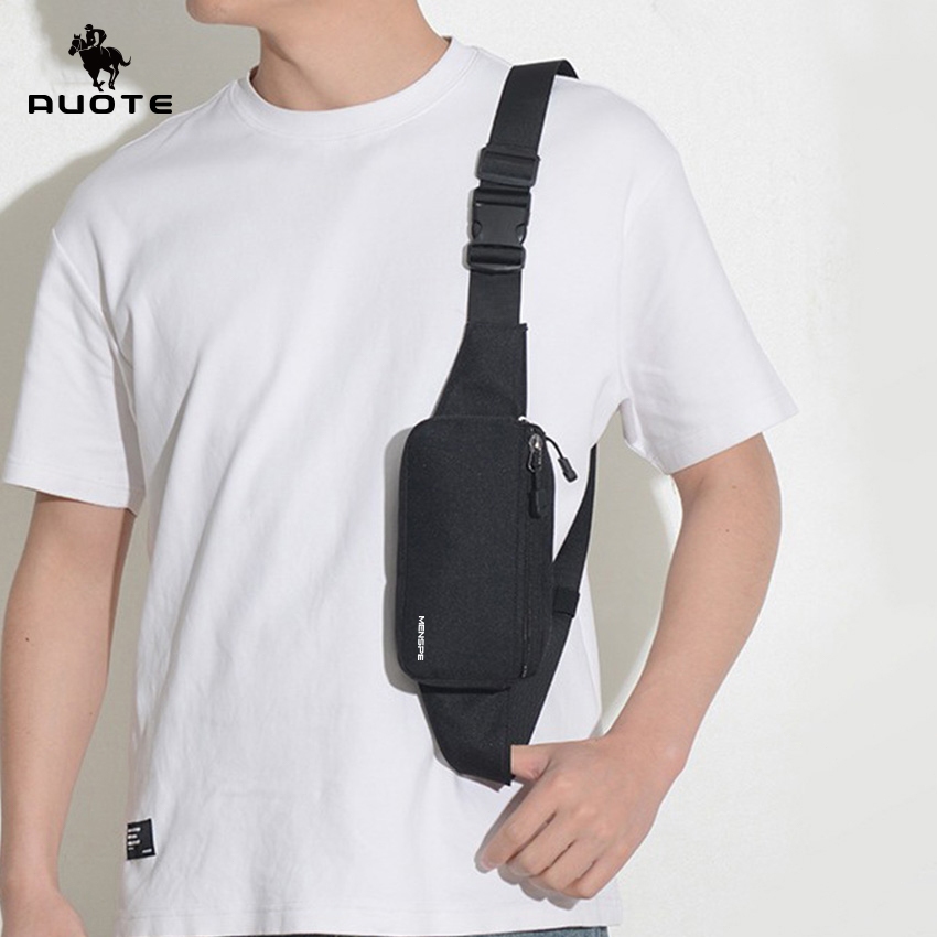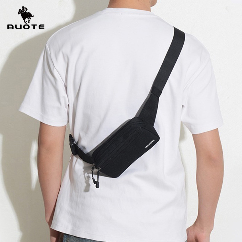 AUOTE ผู้ชายกีฬาเอวกระเป๋าแฟชั่นผู้ชายกระเป๋าหน้าอกกระเป๋ากระเป๋าสะพายกระเป๋ากีฬากันน้ําความจุขนาดใหญ่ออกแบ
