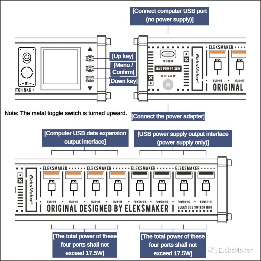 EleksMaker|ฮับ USB สวิตช์บล็อกแบบปรับได้ NK6P - ควบคุมด้วยเสียงจาร์วิส | ฮับขยายพอร์ต หัวแยกUSB สำหรับตกแต่งโต๊ะเกมมิ่ง ของขวัญสุดเท่ให้ผู้ชาย ดีไซน์วินเทจสีโกลด์