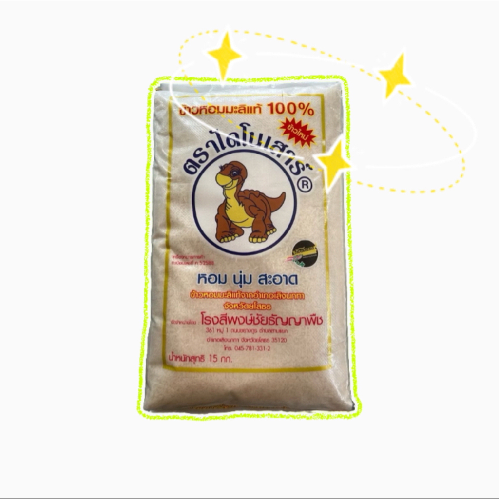 ข้าวหอมมะลิแท้ ตราไดโนเสาร์ ข้าวหอมมะลิแท้100% (แบ่งขาย1กิโล และ 5 กิโลกรัม)