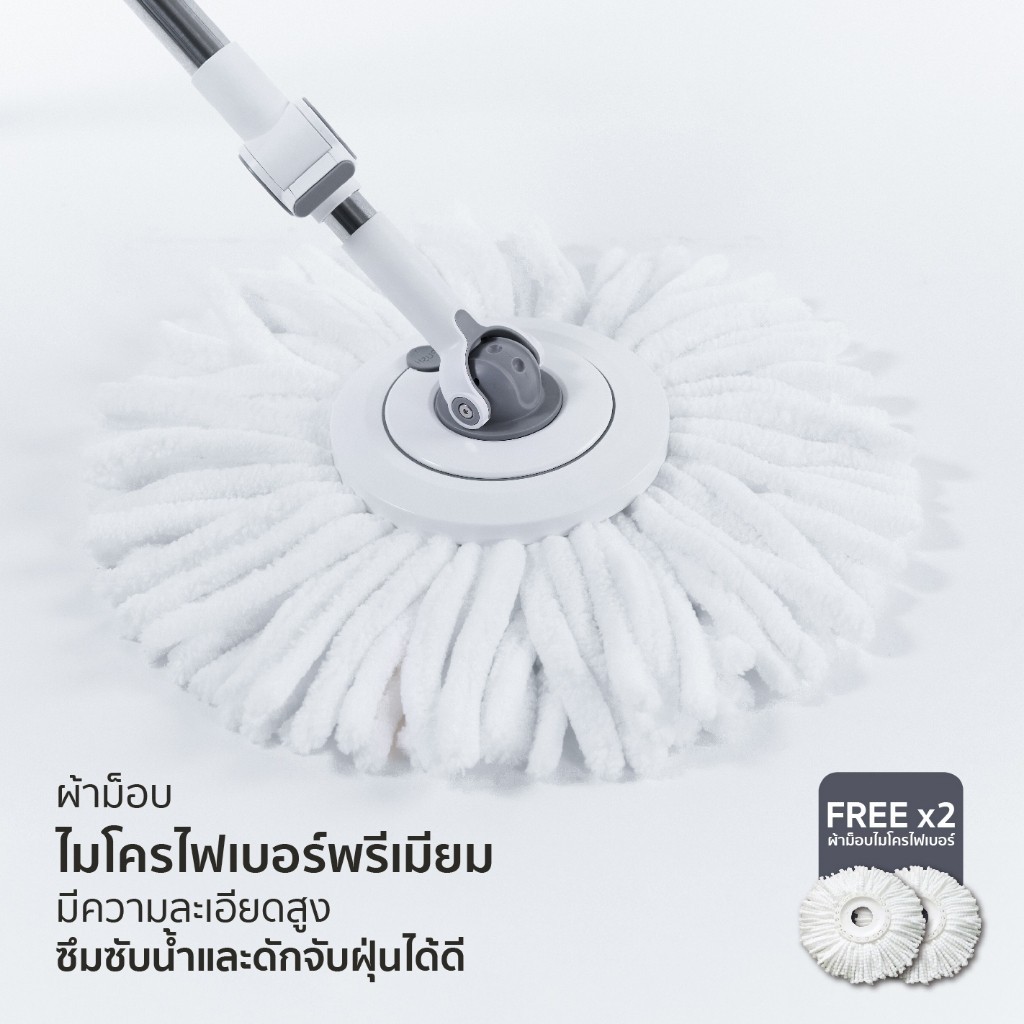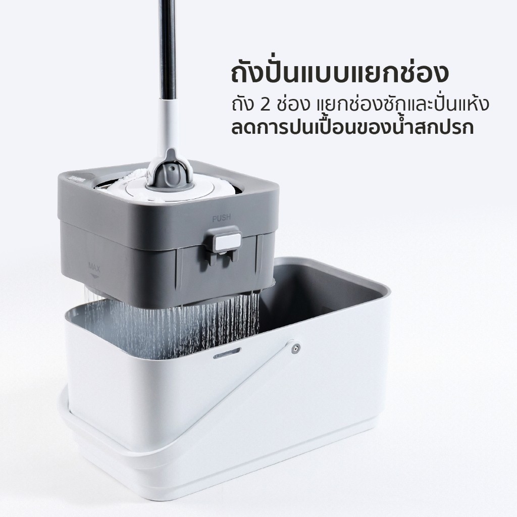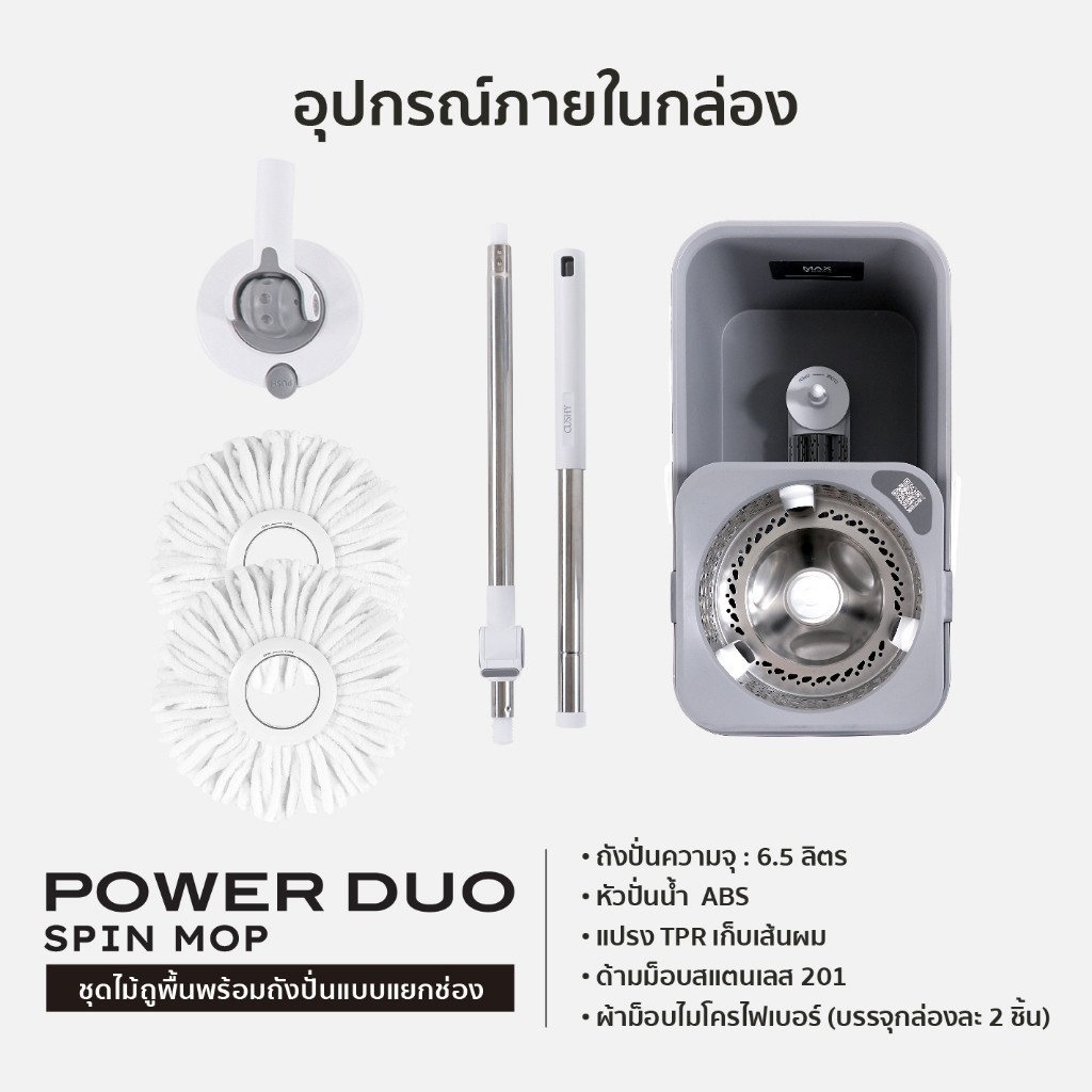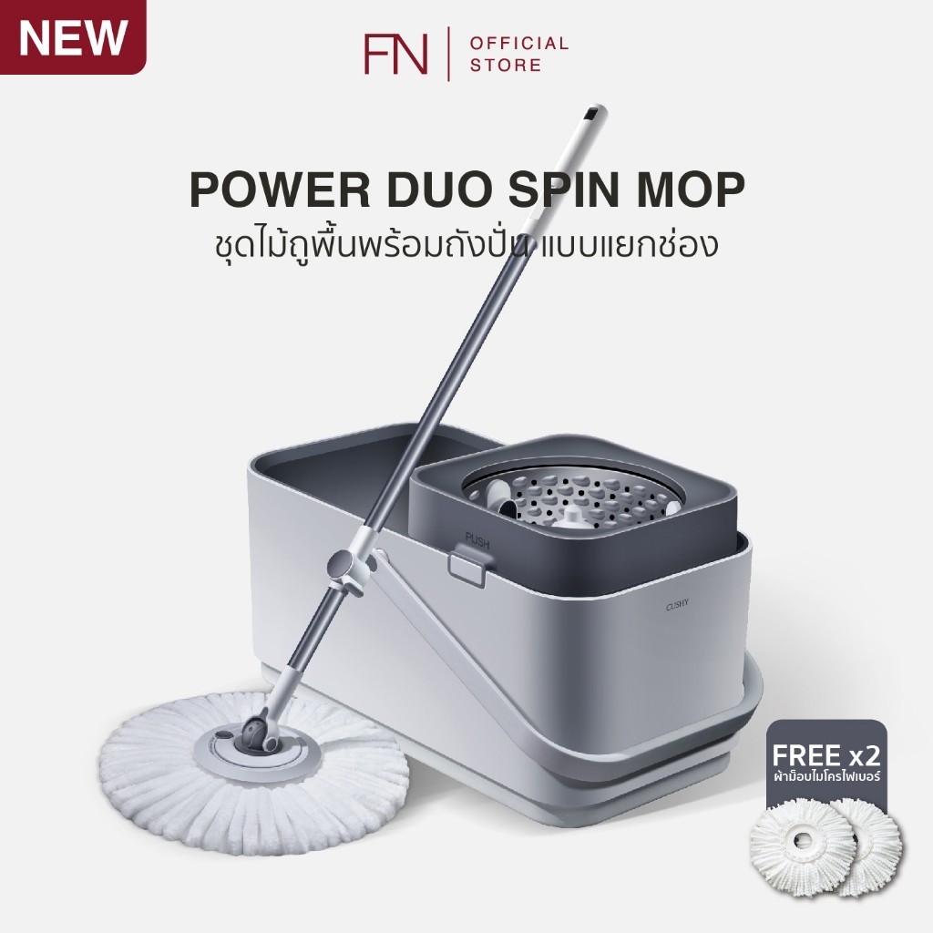 CUSHY ไม้ถูพื้นไมโครไฟเบอร์ ไม้ม็อบ พร้อมถังปั่นแบบแยกช่อง 2 in 1 POWER DUO SPIN MOP ถอดซักได้ ถังปั่นเร็ว ไม่เปลืองแรง