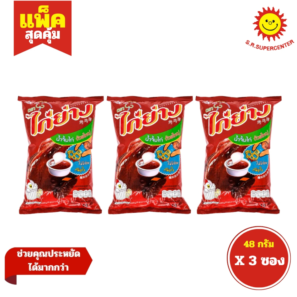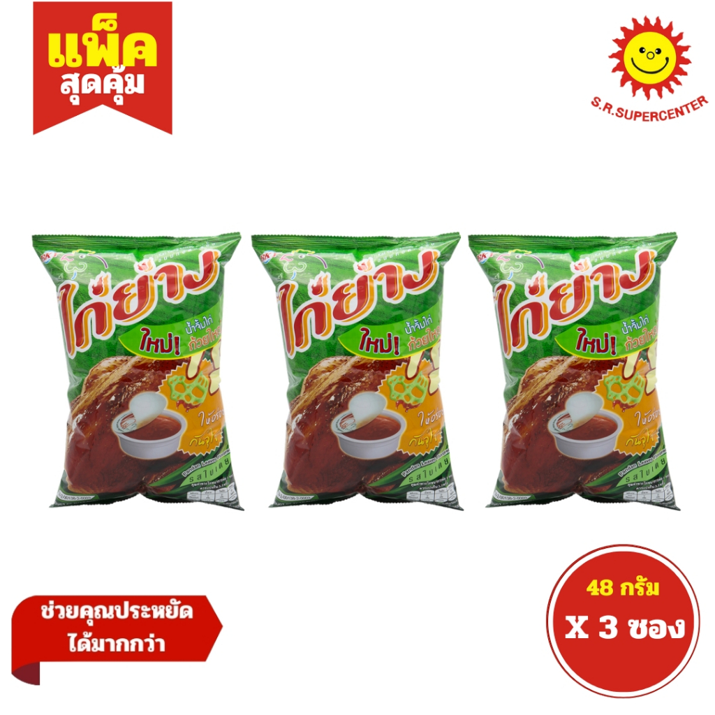 [ 1แพ็ค ] Gai Yang ไก่ย่าง ขนมทอดกรอบ ขนมตราไก่ย่าง พร้อมน้ำจิ้ม ขนาด 48 กรัม (แพ็ค3ซอง) คละรสชาติ