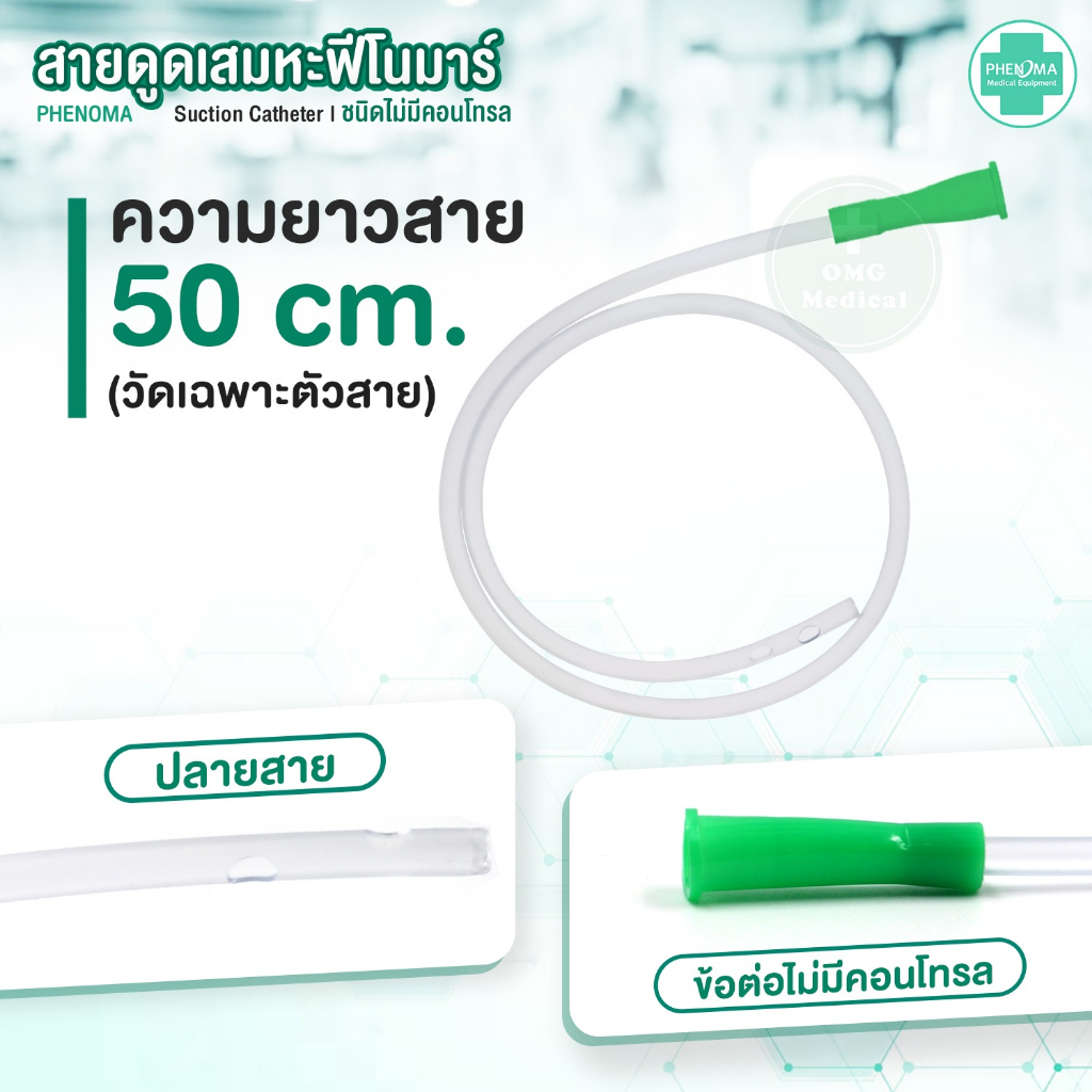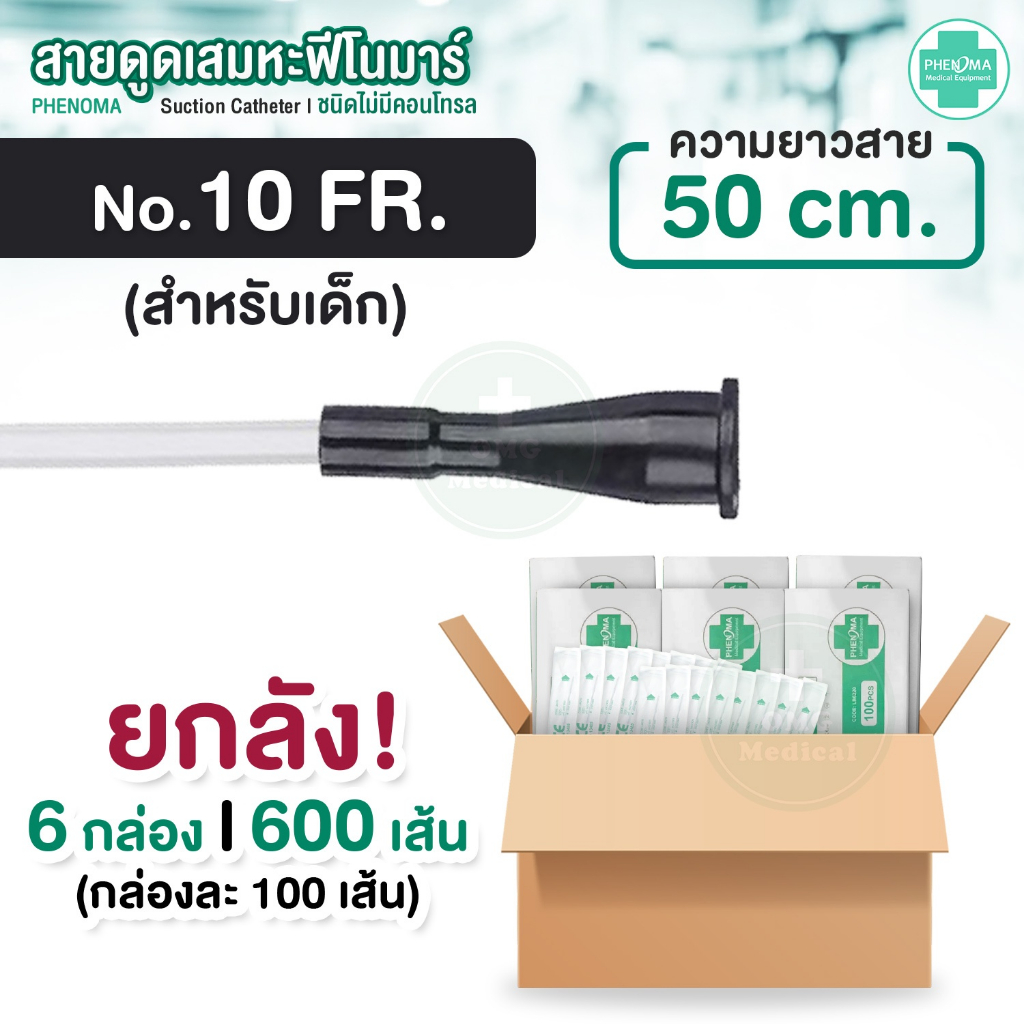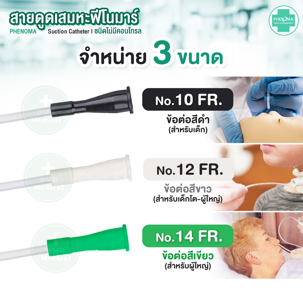 ยกลังคุ้มกว่า! สายดูดเสมหะ ไม่มีคอนโทรล เบอร์10 12 14 PHENOMA Suction Catheter ใช้กับเครื่องดูดเสมหะทุกชนิด สายSUCTION