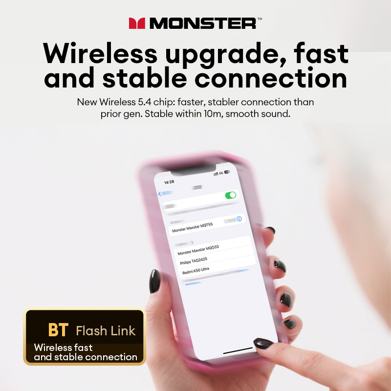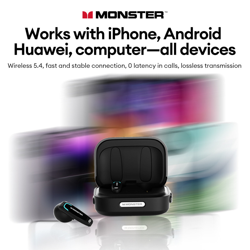 Monster MQT55 หูฟังบลูทูธไร้สาย Latency ต่ําสมาร์ทสัมผัสกีฬากันน้ําสําหรับเล่นเกม 5.4