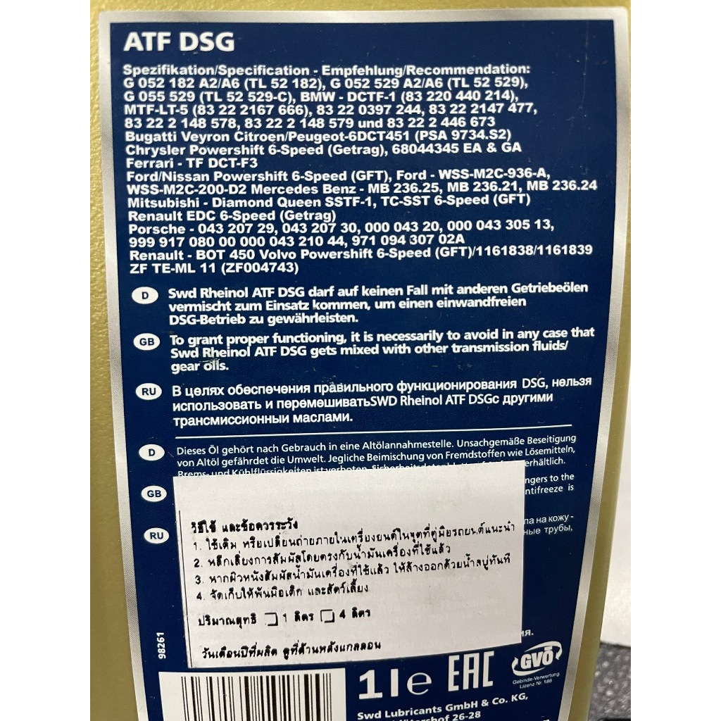 น้ำมันเกียร์สังเคราะห์แท้ SWD Rheinol ATF DSG, DCT (1 L)