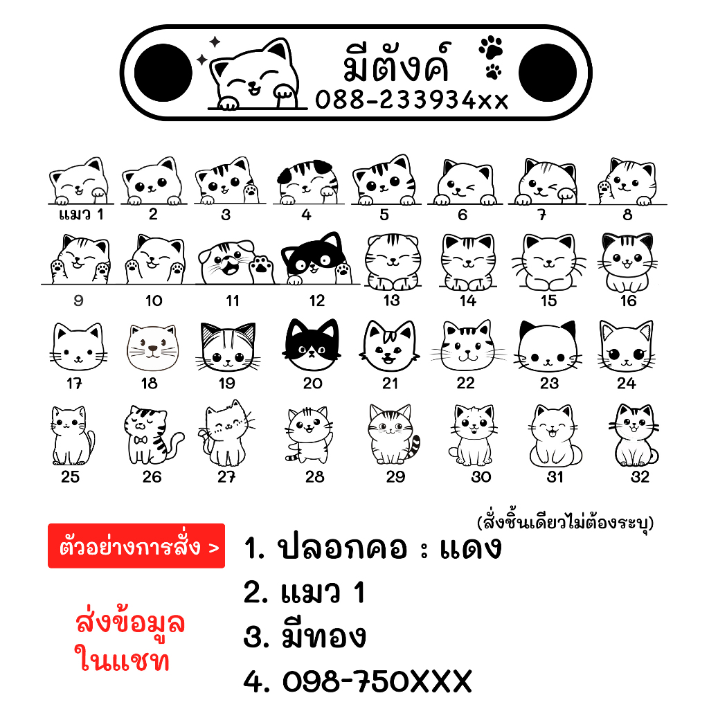 ป้ายชื่อแมวพร้อมปลอกคอ สลักชื่อ ป้ายสแตสเลส ตอกกับปลอกคอ