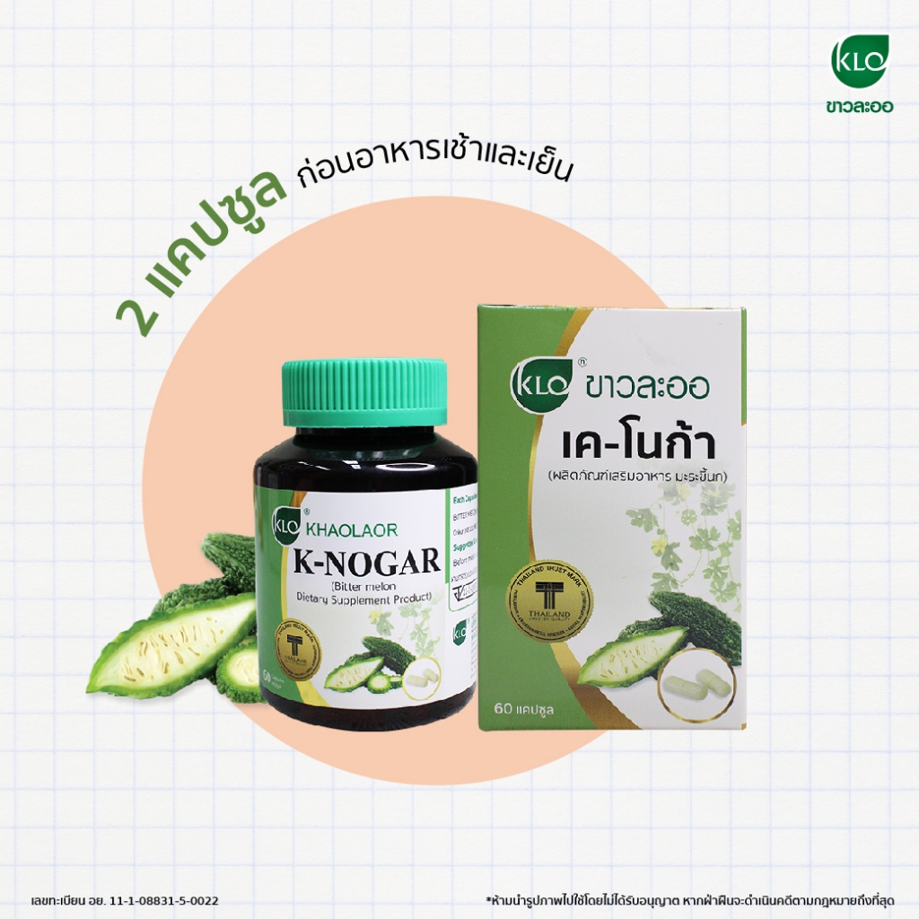 (แพ็ค 2) Khaolaor ขาวละออ เค-โนก้า (ผลิตภัณฑ์เสริมอาหารมะระขี้นก) 60 แคปซูล/กล่อง