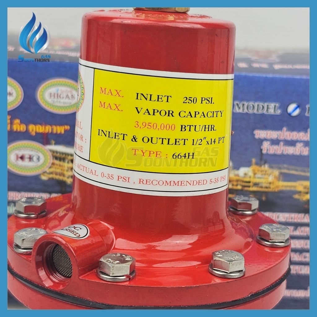 หัวปรับแก๊สแรงดันสูง 1/2(4หุน) เดินไลน์ ระบบท่อแก๊ส HIGAS รุ่น HH-664H