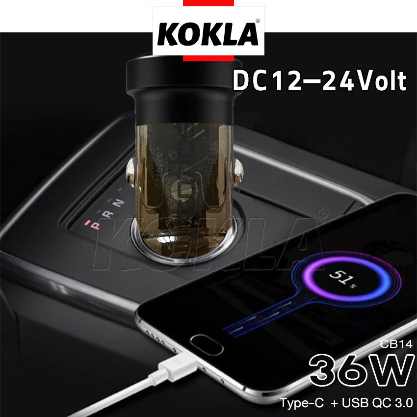 ส่งด่วน kokla caflas Car Charger DZ3 36W มี 2ช่อง USB QC3.0 Type-C PD รองรับ 12V-24V QC3.0 (1ชิ้น) ที่ชาร์จในรถ #CB14