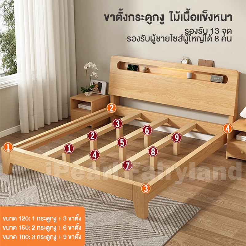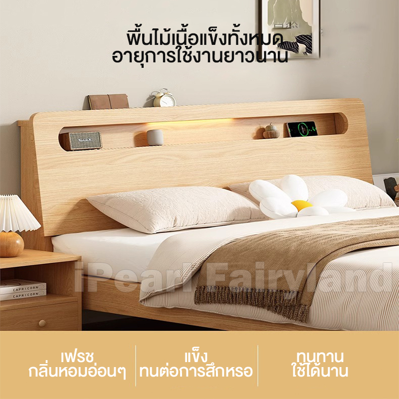 iF เตียงนอน ฐานเตียง+หัวเตียง เตียงไม้ 4/5/6 ฟุต ที่เก็บของข้างเตียง ไม้เนื้อแข็ง 100% ฐานเตียง