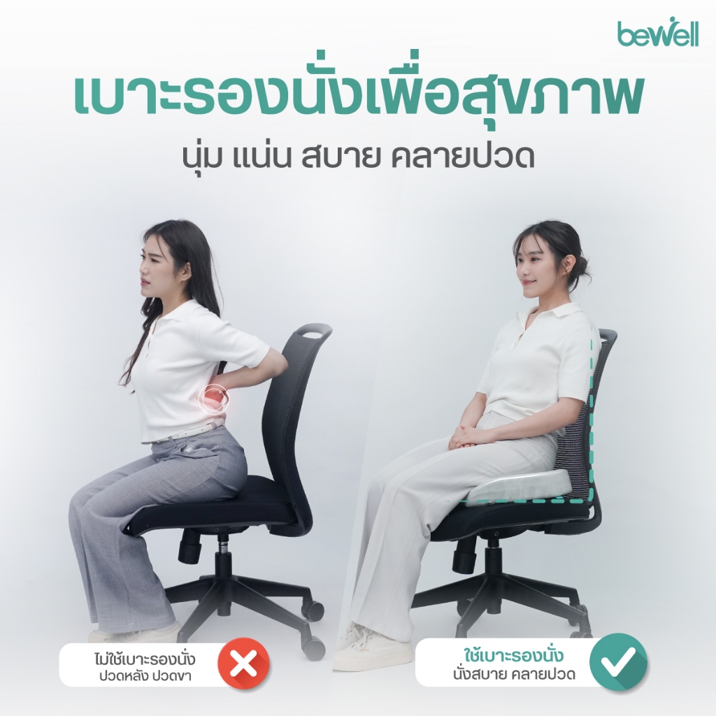 Bewell เบาะรองนั่งเพื่อสุขภาพ ลดแรงกดทับก้นกบ บรรเทาปวดหลังรองรับสรีระได้ดี ใช้ได้กับเก้าอี้หลากหลาย