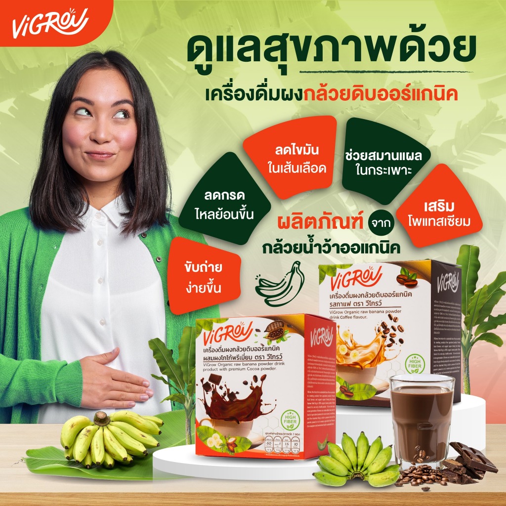 เครื่องดื่มผงกล้วยดิบออร์แกนิคผสมโกโก้พรีเมี่ยม ตรา Vigrow ชงง่าย กลิ่นโกโก้หอม สินค้าคุณภาพ พร้อมส่ง