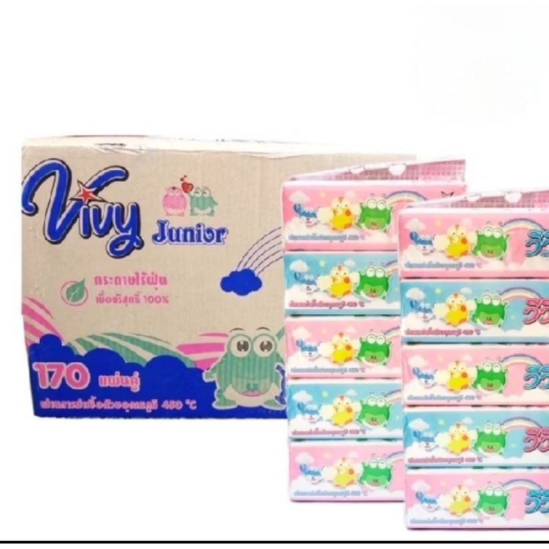 กระดาษทิชชูเช็ดหน้าวีวี่ Vivy Junior 1แพ็ค มี 5 ห่อ 170 แผ่น หนา 2 ชั้น