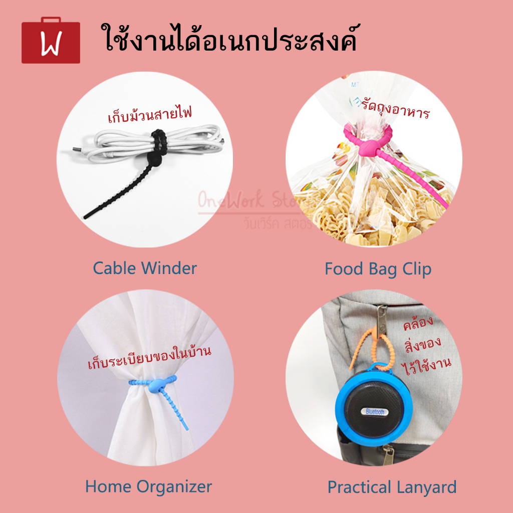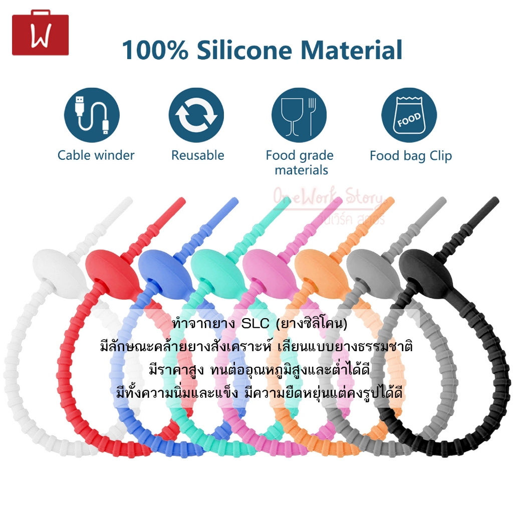 Oneworkstory สายรัด ซิลิโคน l SLC/TPR DIY ที่รัดสายชาร์จ สายคล้องพวงกุญแจ เคเบิ้ลไทร์ Reusable Silicone cable tie