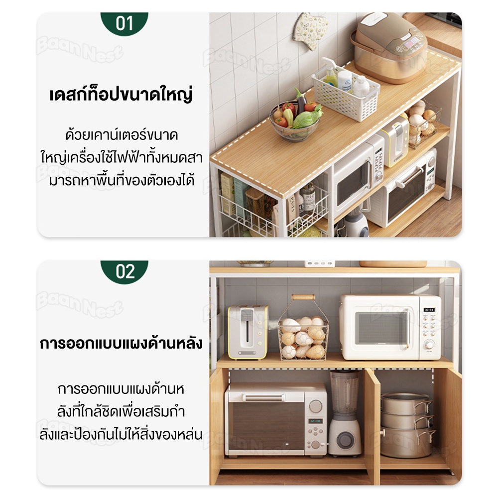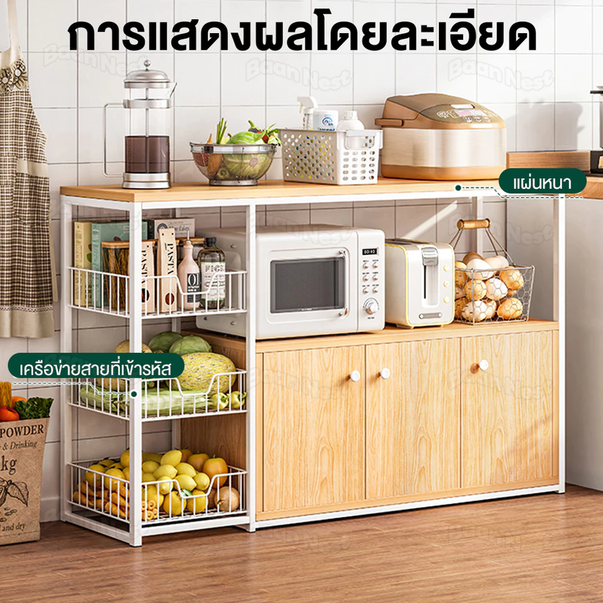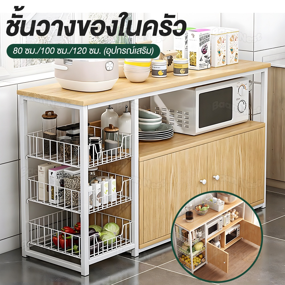 BN เคาเตอร์ครัว ชนิดไม้+โครงเหล็ก ชั้นวางของในครัว ตู้กับข้าว ชั้นวางไมโครเวฟ ชั้นวางอเนกประสงค์
