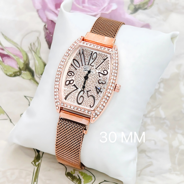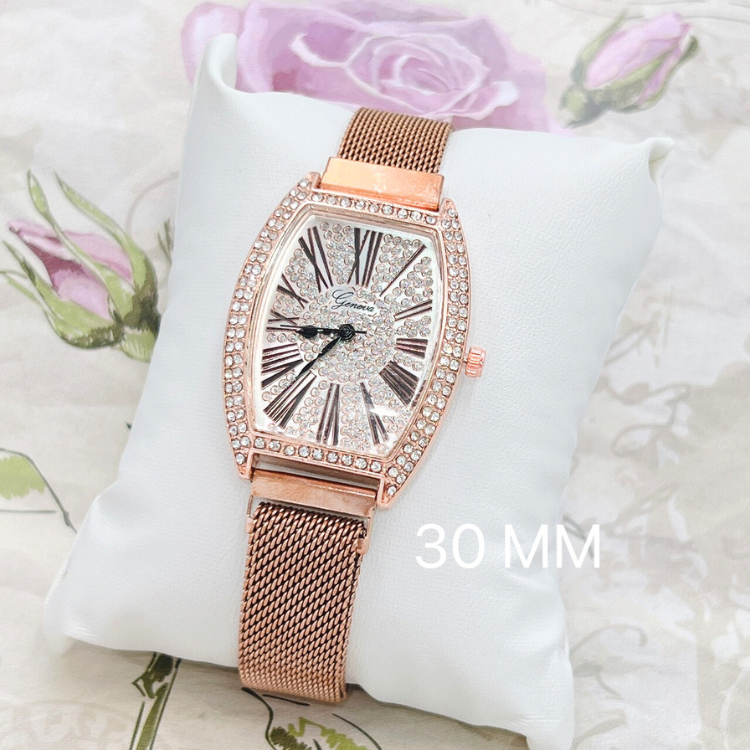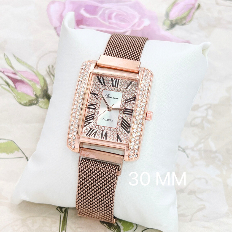 GENEVA นาฬิกาข้อมือผู้หญิงที่มีหน้าปัดทรงสี่เหลี่ยมจัตุรัสและสายสเตนเลสสตีลแบบเหล็ก