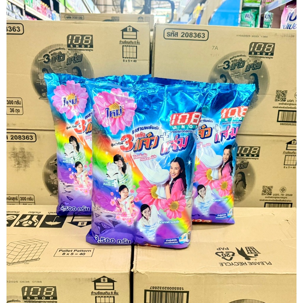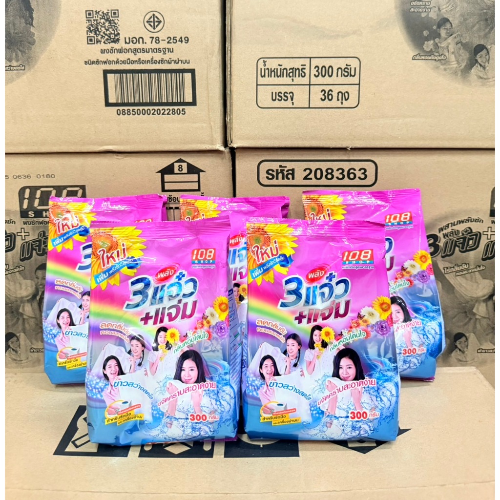 (ยกลัง) ผงซักฟอก 108 SHOP 3 พลัง แจ๋ว ขจัดคราบสะอาดง่าย ขนาด 300 - 3,500 กรัม