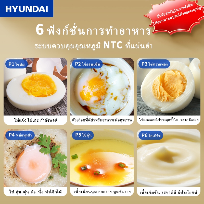 HYUNDAI หม้อต้มไข่ อัตโนมัติ 5ฟอง จับเวลา Electric Egg Cooker หม้อนึ่งไข่ ที่นึ่งอาหาร เครื่องต้มไข่ไฟฟ้า และนึ่งอัตโนมั