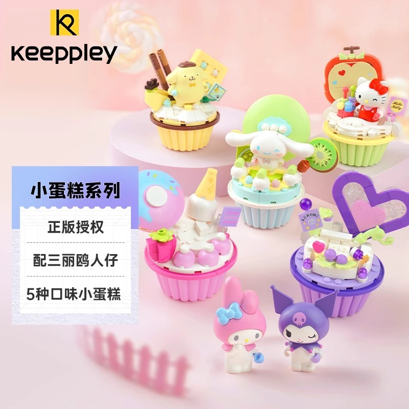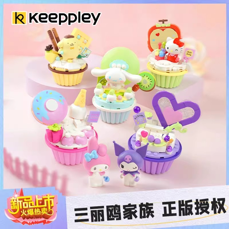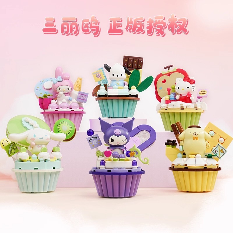 บล็อกตัวต่อซานริโอ้ Kuromi HelloKitty HelloKitty Melody เค้กตกแต่งบล็อกตัวต่อประกอบของเล่นเพื่อการศึกษาเด็กสาวของขวัญ
