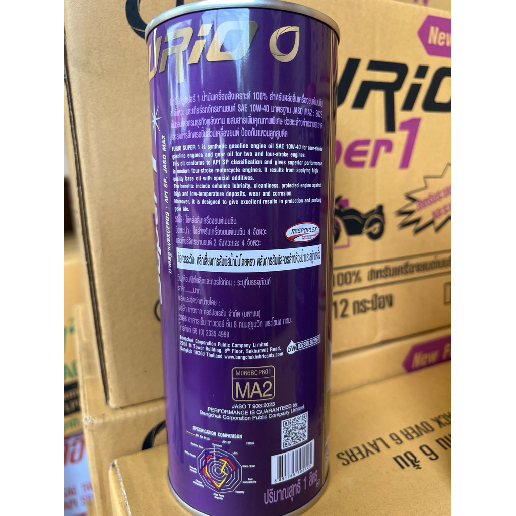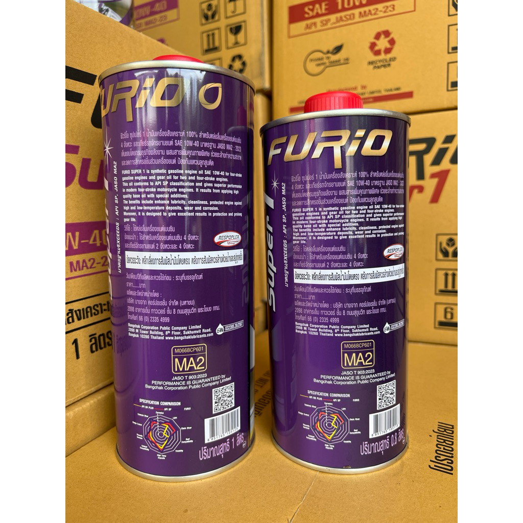 น้ำมันเครื่อง รถจักรยานยนต์ FURIO Super 1 4T fully synthetic Engine oil sae 10w-40 JASO MA2
