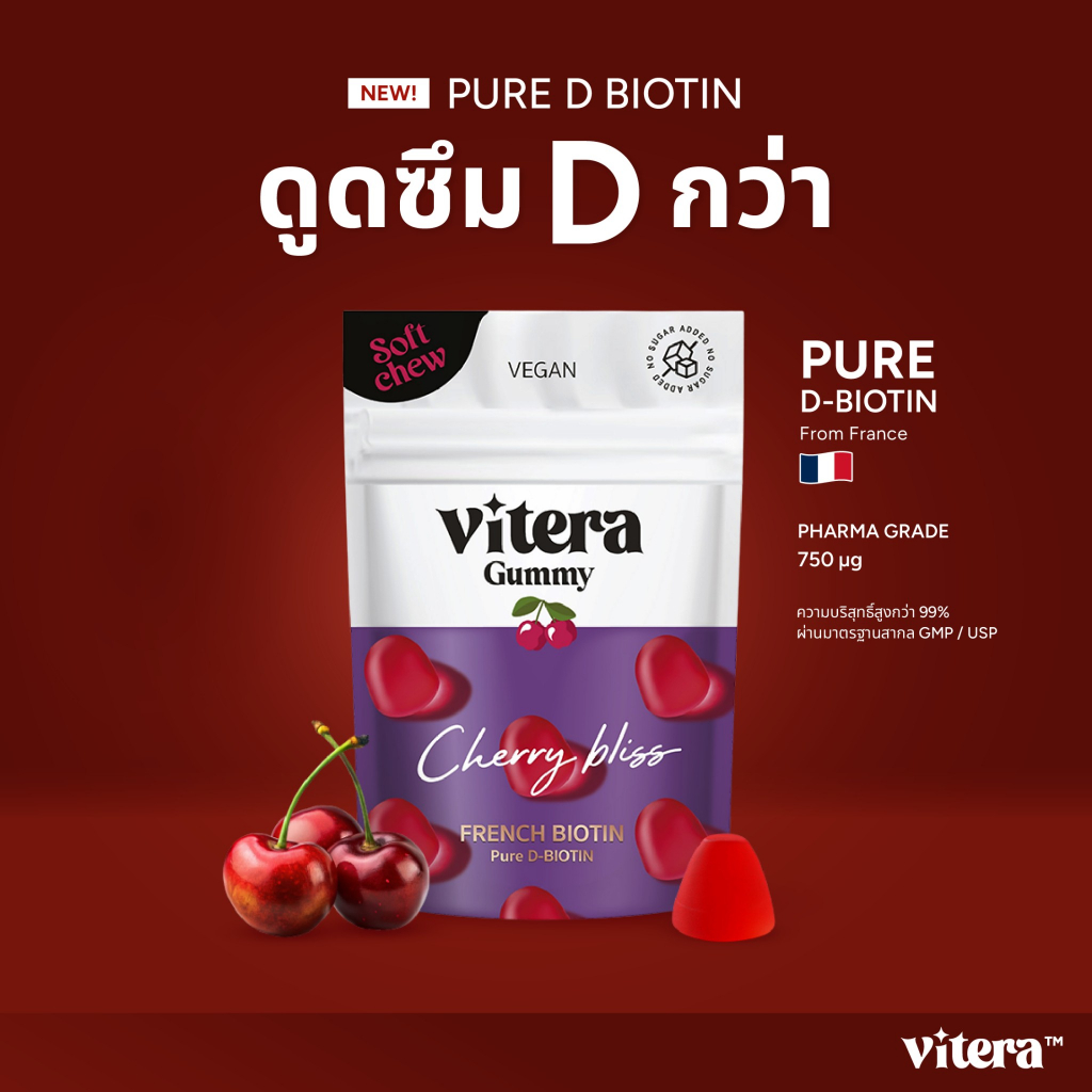 วิตามินบำรุงผม สูตรลดมัน–กันร่วง Pure D-Biotin ฝรั่งเศส | กัมมี่นุ่ม อร่อย ผมหนาไว ลดร่วงชัด( 1ซอง)