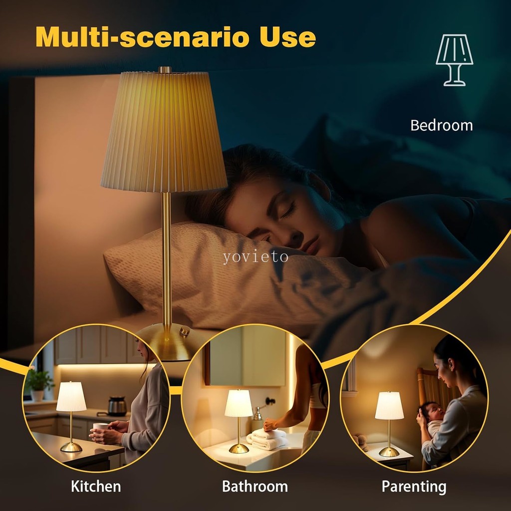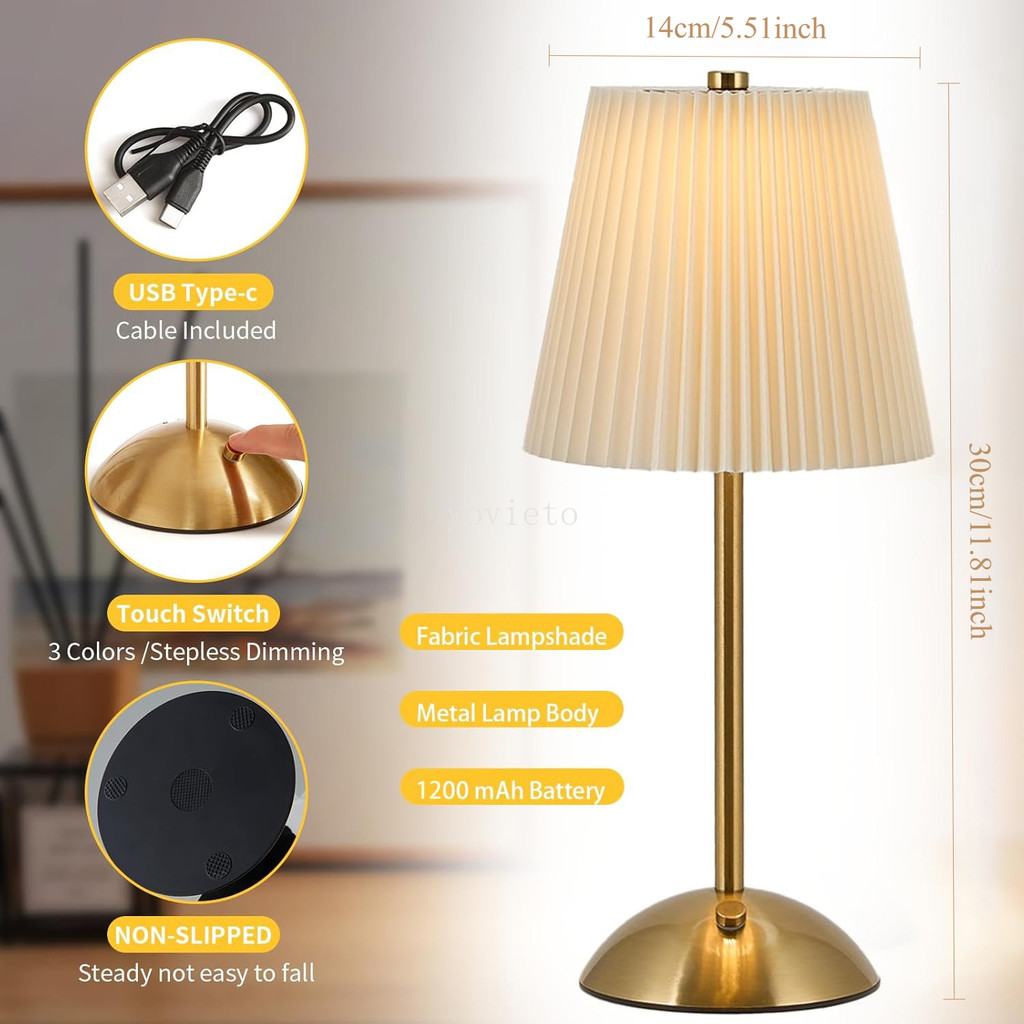 โคมไฟตั้งโต๊ะแบบชาร์จไฟไร้สาย โป๊ะผ้าหรี่แสงได้ 3 สี สําหรับห้องนอน ห้องนั่งเล่น สํานักงาน บาร์