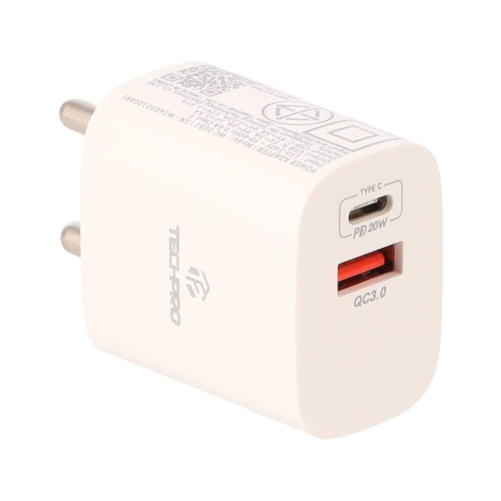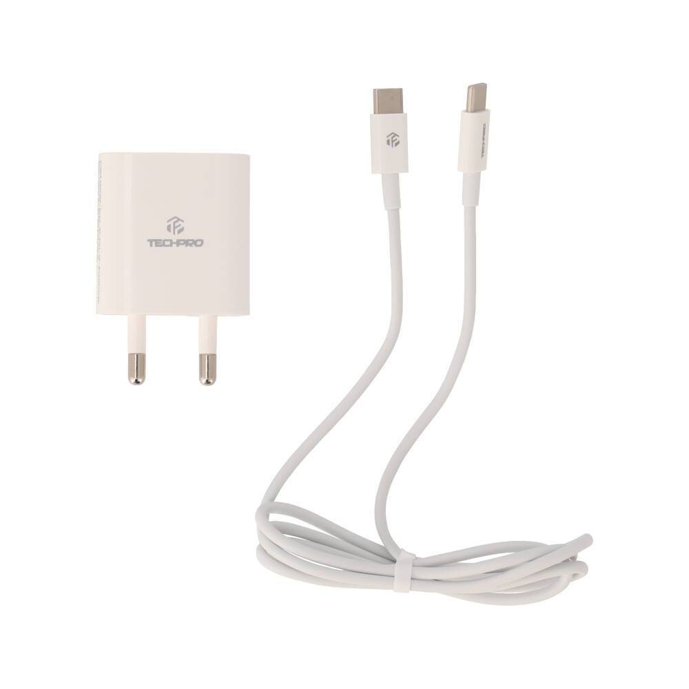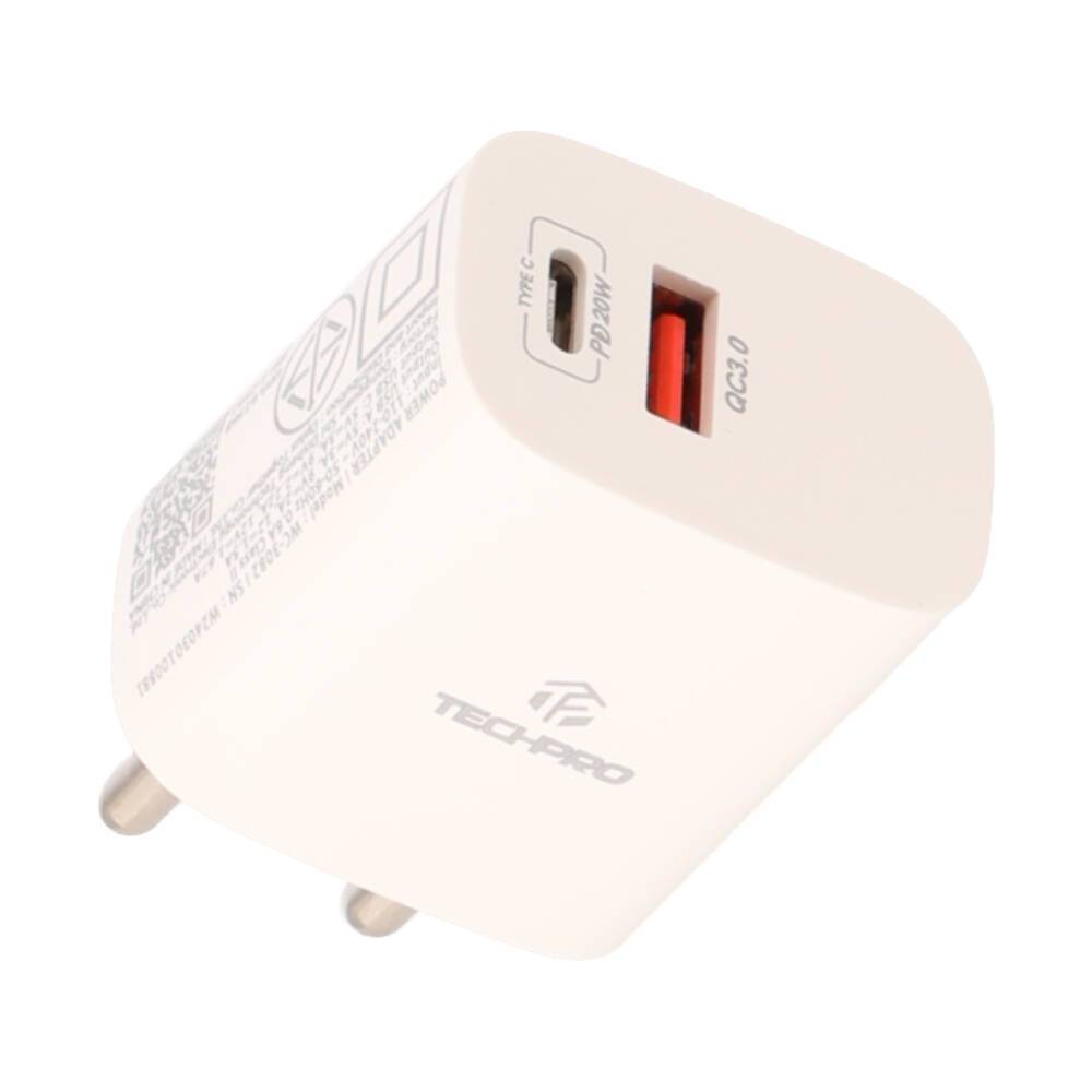 อะแดปเตอร์ TECHPRO Wall Charger 1 USB-A / 1 USB-C 20W พร้อมสายชาร์จ USB-C to USB-C 1 เมตร by Banana IT