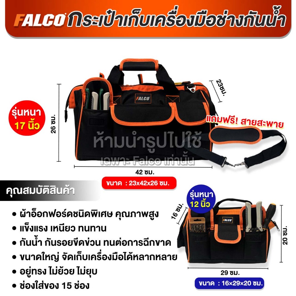 FALCO กระเป๋าเครื่องมือช่าง Tool Bag ใส่เครื่องมือช่างอเนกประสงค์ กันน้ำ แข็งแรง ความจุได้เยอะ