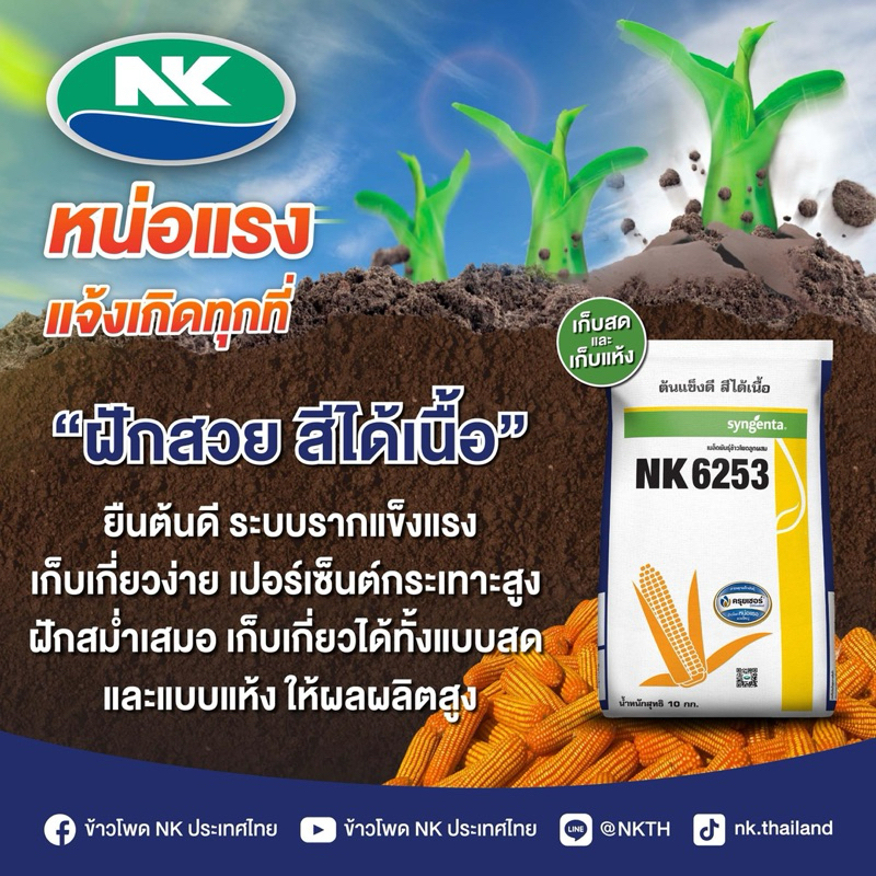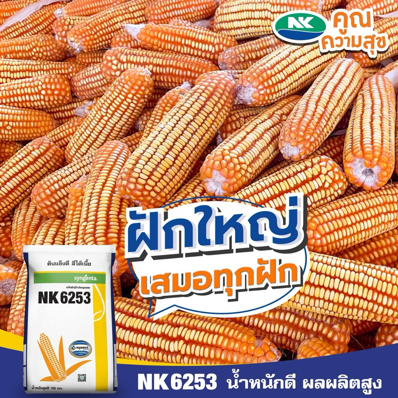 เมล็ดพันธุ์ข้าวโพด NK 6253 (3 หุน,3.5 หุน) *ขนาด 10 กก. ฝักสวย สีได้เนื้อ เก็บเกี่ยวได้ทั้งแบบสดเเละแบบแห้ง ให้ผลผลิตสูง