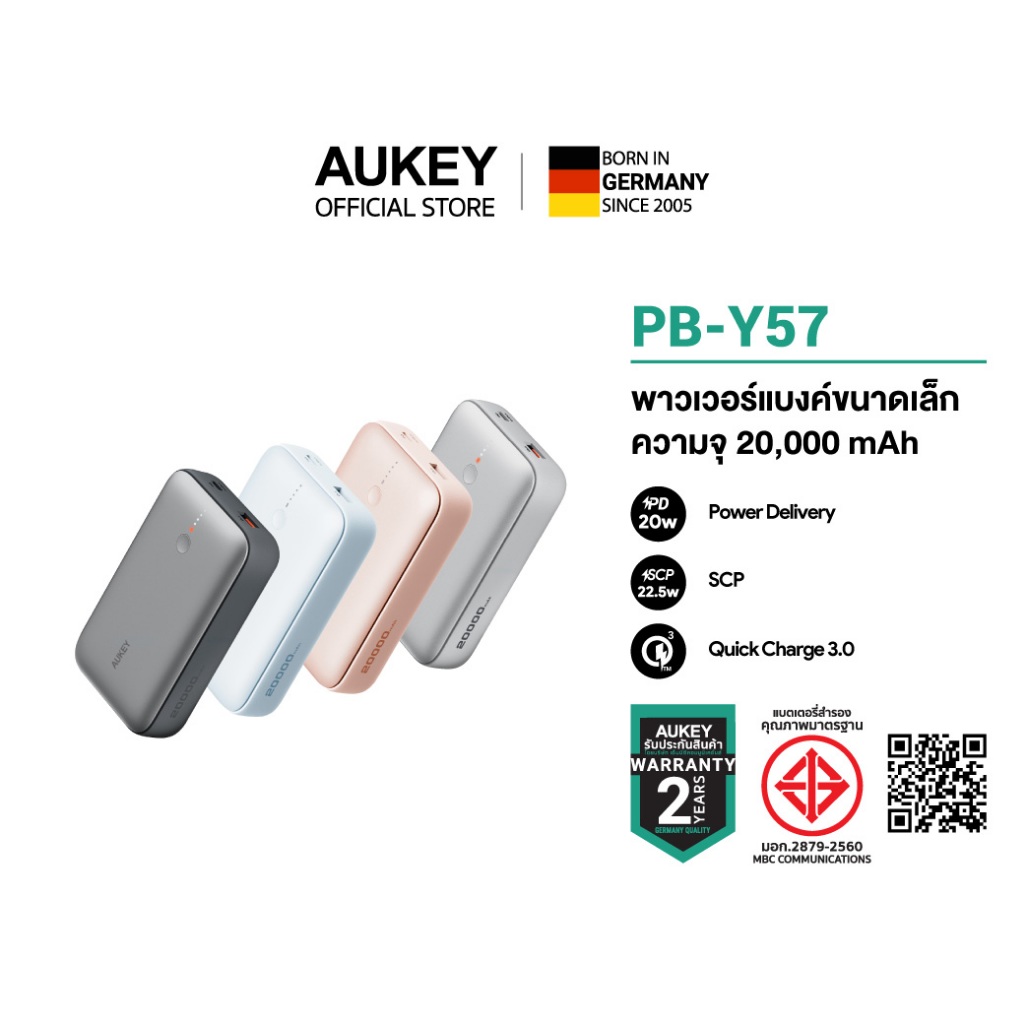 [CCC] AUKEY PB-Y57 พาวเวอร์แบงค์ชาร์จเร็ว ความจุ 20000mAh รองรับชาร์จเร็ว PD 20W & SCP 22.5W