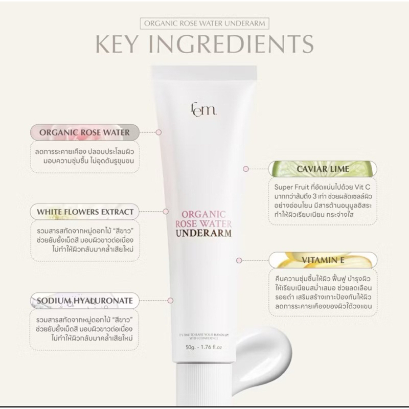 FEM ORGANIC ROSE WATER UNDERARMออร์แกนิก โรส วอเทอร์ อันเดอร์อาร์ม