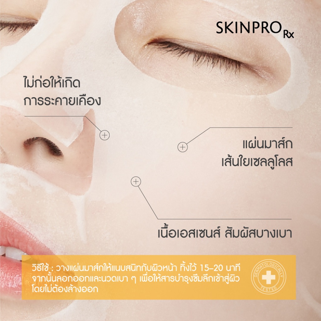 SKINPRO Rx Bright & Glow 8X Hya Booster Mask ชีทมาสก์มอบผิวฉ่ำโกลว์ข้ามคืน 25 ml. x5