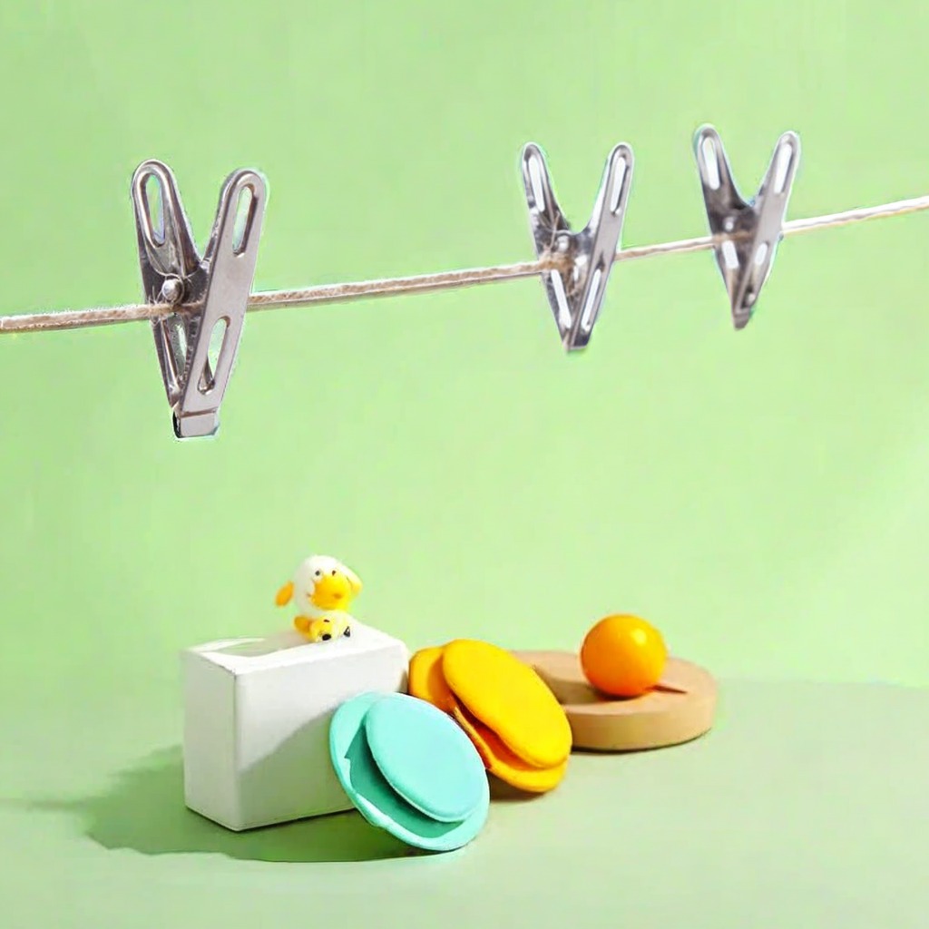 ที่หนีบผ้าสแตนเลสแบบหนา 20 ชิ้นสำหรับคลิปหนีบผ้าในครัวเรือนคลิปอาหาร