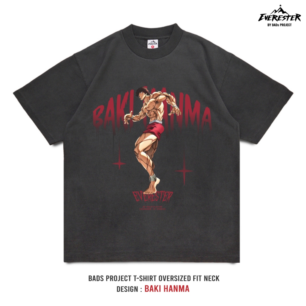 EVERESTER เสื้อวินเทจ ฟอก เฟดเทาดำ เสื้อผู้ชาย Heavy Cotton Oversize รุ่น Baki เสื้อยืดผู้ชาย FED