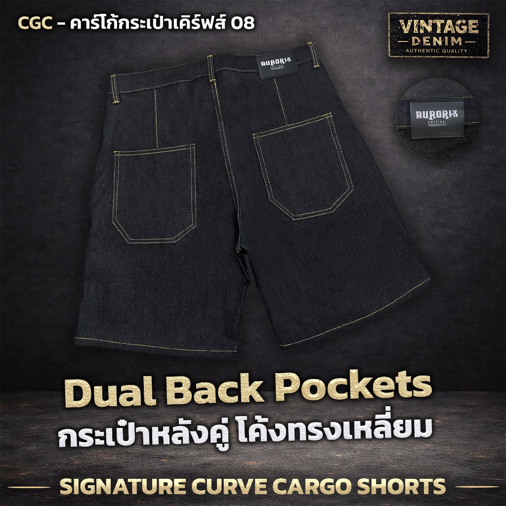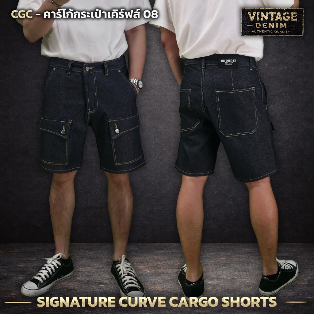 CGC กางเกงยีนส์ขาสั้น คาร์โก้กระเป๋าเคิร์ฟ ขาสั้นวินเทจ Aurorix รุ่น คาร์โก้กระเป๋าเคิร์ฟ