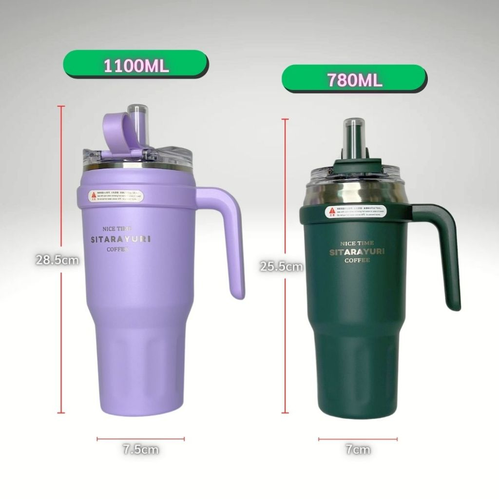 SITARAYURI แก้วยูริหูจับข้าง เก็บอุณหภูมิร้อน&เย็น สแตนเลส304 เปิดจิบดื่มหรือดูดจากหลอด 2 แบบได้ในฝาเดียว