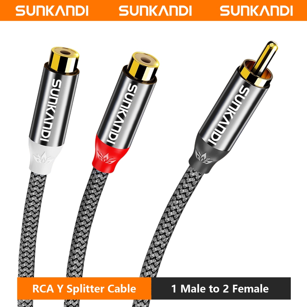 Sunkandi RCA Male To Dual RCA Female Y Splitter Cable Converter Cord Adapter Cable