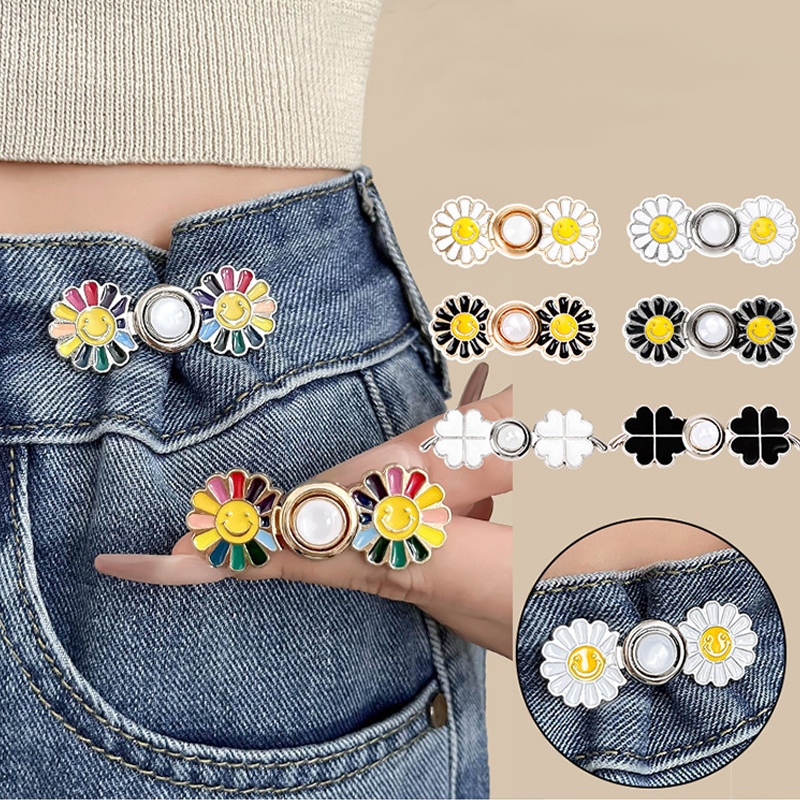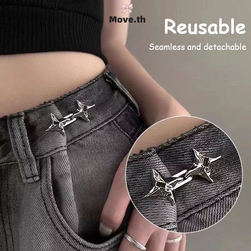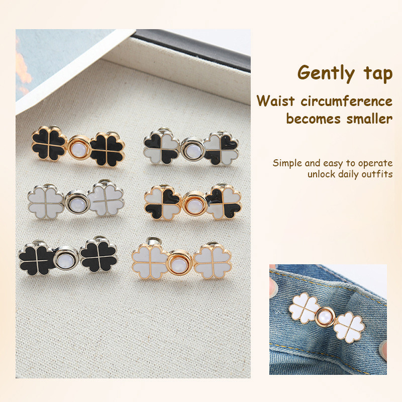 ในไทย-พร้อมส่ง✨คลิปกระดุมโลหะแฟชั่น โคลเวอร์สี่ใบ ตะขอกางเกง เข็มกลัดเอว DIY อุปกรณ์เสริม สำหรับผู้หญิง แบบพกพา ทนทาน-Mo