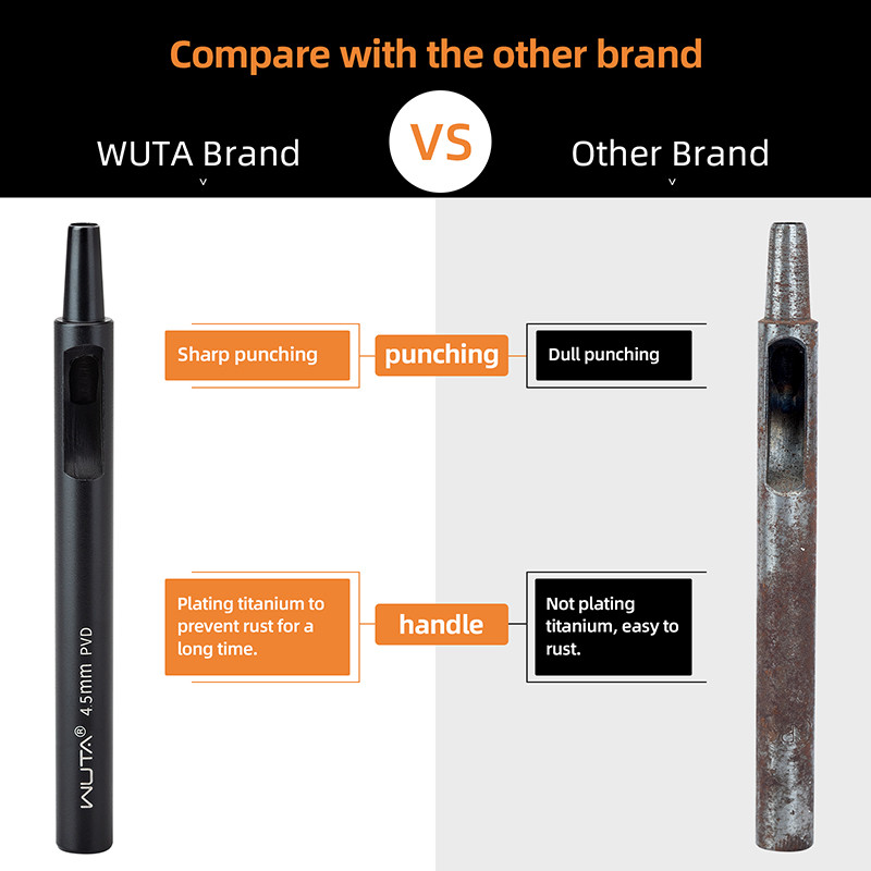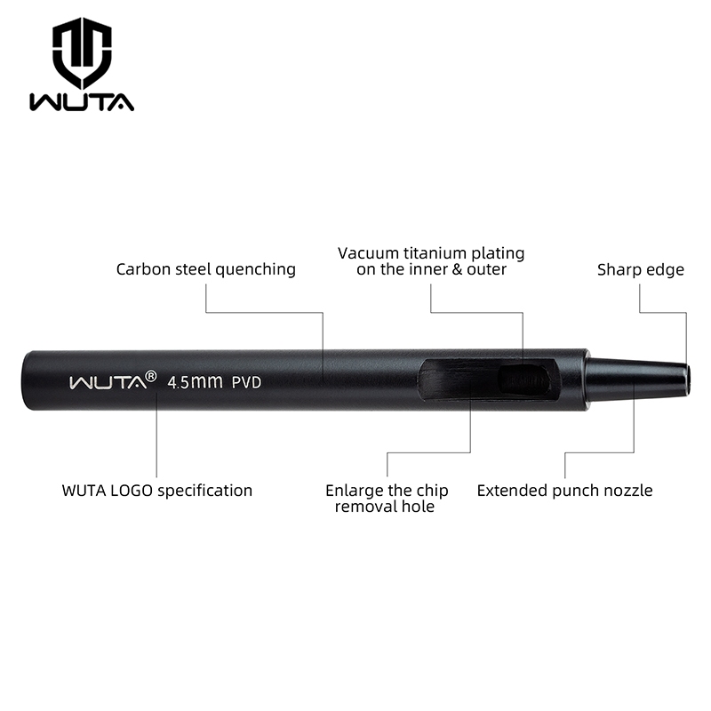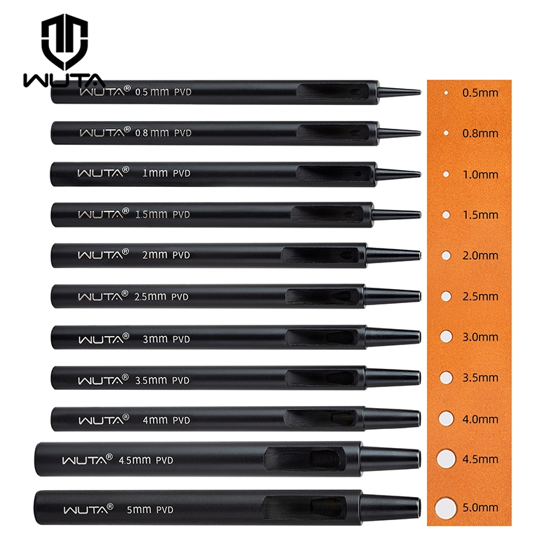 WUTA ที่เจาะหนัง หมัดกลม เครื่องมือเจาะป้องกันสนิมไทเทเนียมสีดำ เหมาะสำหรับเจาะสายหนัง เครื่องมืองานฝีมือ DIY Leather Hollow Puncher