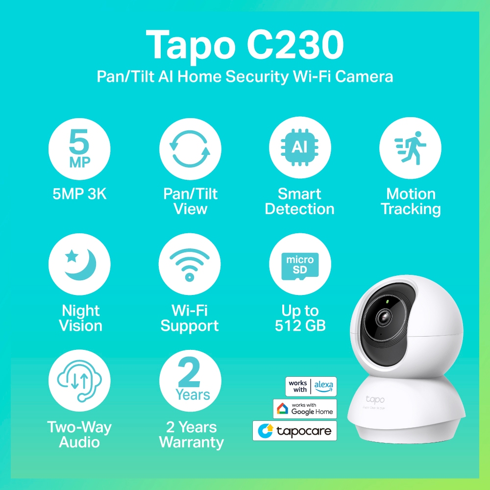 TP-Link Tapo C230 กล้องไวไฟ 3K 5MP มี AI ตรวจจับ คมชัดพิเศษ Pan/Tilt AI Home Security Wi-Fi Camera มองเห็นชัดแม้แสงน้อย