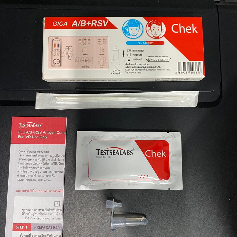 Gica Testsealab ชุดตรวจไข้หวัดใหญ่สายพันธุ์ A/B และไวรัสRSV จากเยื่อบุโพรงจมูก